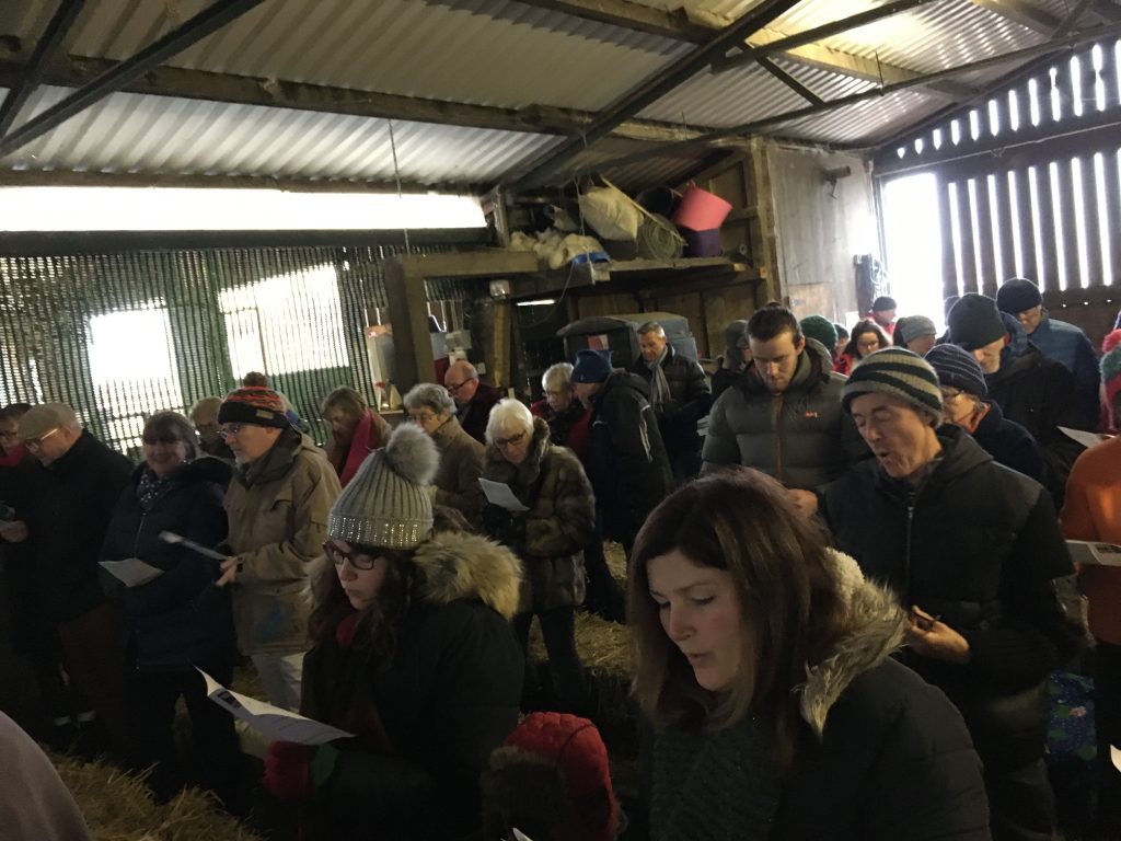 We open our barns up on the first Sunday in Advent for a non denominational church service to kick of the Christmas season. It is always cold, but the weather excelled itself this time and coated everywhere with a beautiful layer of snow, making getting up here harder work than usual. This year Carrie, our Guernsey cow, very obligingly calved a few days before the service so everyone was able to meet young Ellie-May our new pure Guernsey heifer.