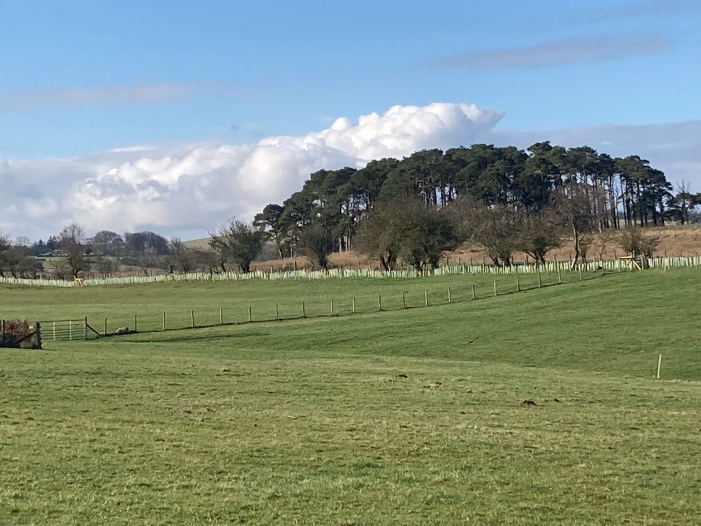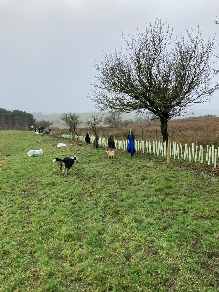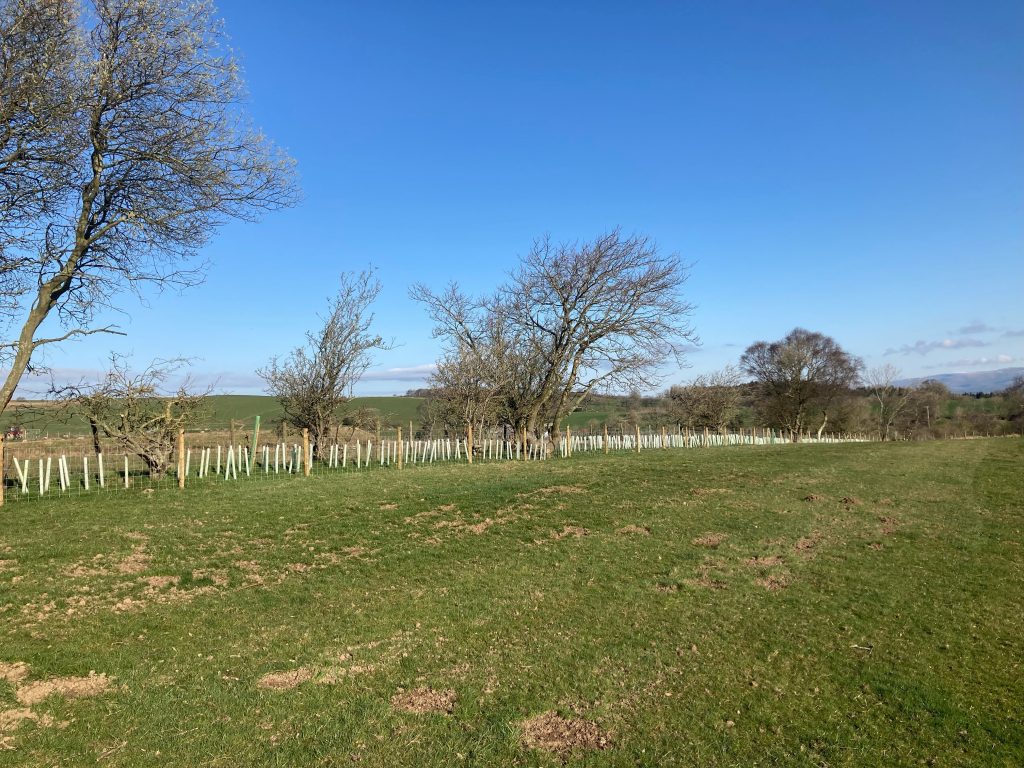 We have been awarded a hedge planting grant by the government to help us plant 633m of new hedging along the west borders of the farm. This entailed firstly putting in over 200 fence posts to create a corridor for the new plants and to keep the livestock away . Thankfully when it came to planting the nearly 4,000 plants the newly formed Asby Tree Group were very happy to provide the volunteer labour to help plant, stake and apply tree guards to every plant. We are very grateful indeed to them. It would have taken Stephen and I weeks and weeks to do it on our own. The weather was glorious for the chosen planting days and everyone thoroughly enjoyed themselves and got immense satisfaction for a job well done.